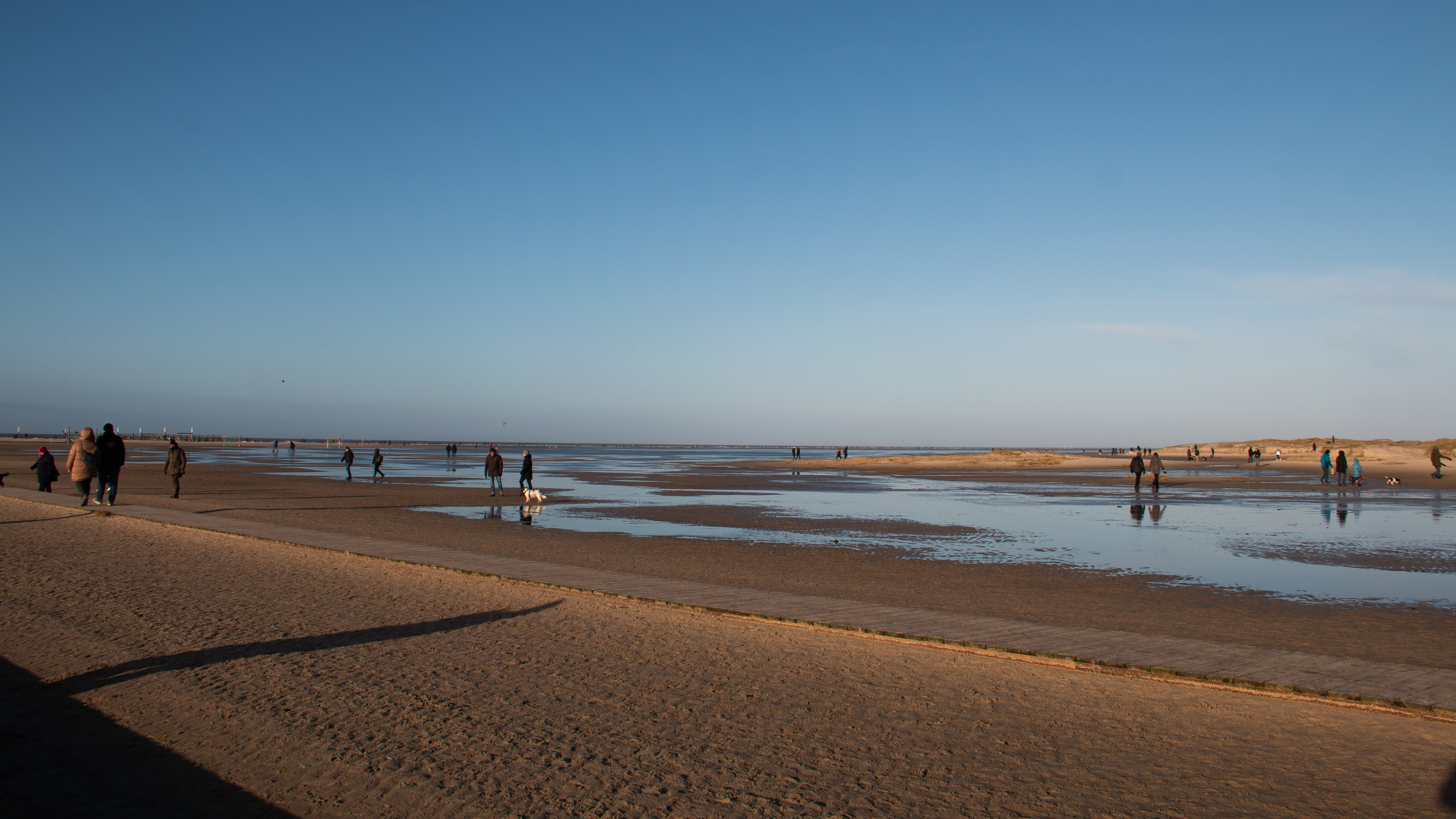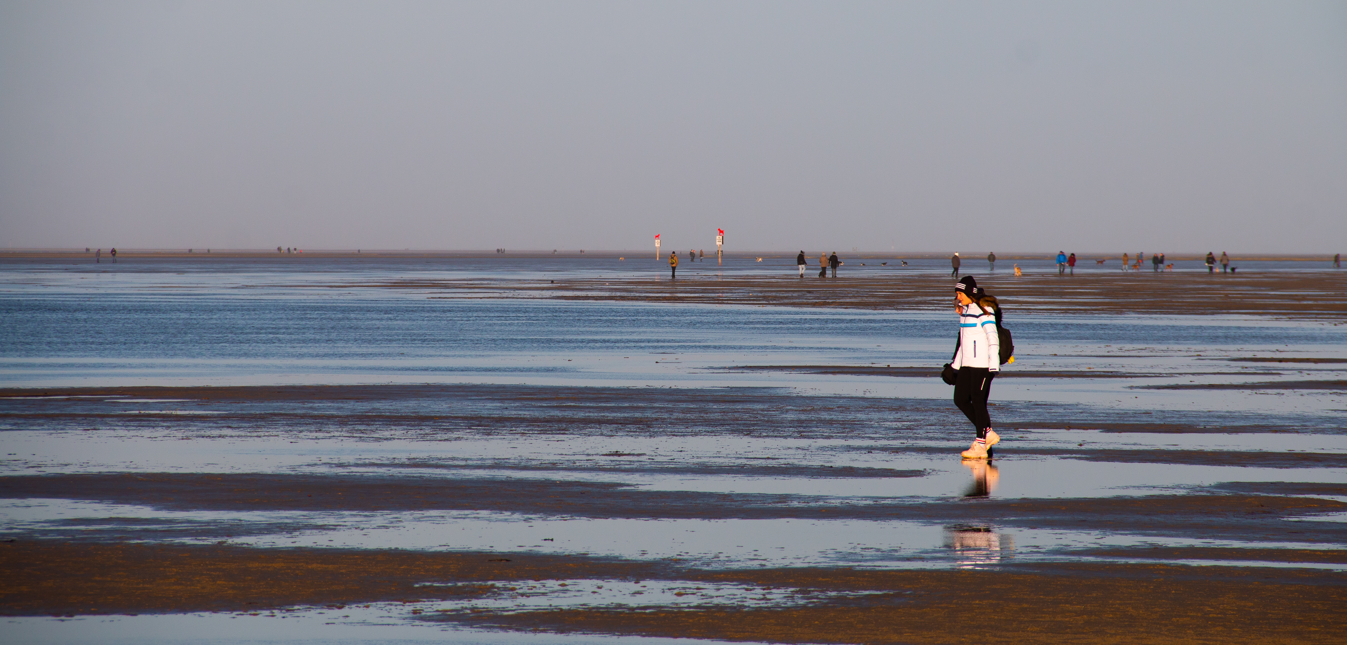 Heute sind nicht Viele hier. Ein paar von denen, die mit Dir hier sind, laufen wie Du, Richtung Norden, Andere kommen Dir entgegen, wieder Andere sind stehen geblieben und schauen auf’s Meer. Die einen blicken versonnen, stumm, andere verschlossen, in-sich-versunken, in ihren Gedanken gefangen. Aber manche haben schon diesen gewissen Blick, den freien, diesen besonderen, diesen gelösten Gesichtsausdruck; den Gesichtsausdruck derjenigen, die lange genug der Wasserkante zugehört haben. Und die verstanden haben, was sie hörten. Dieses Verstehen ist kein rationales, das sich dem vernunftsbestimmten Denken erschliesst, es ist vielmehr ein meditatives. Viele, so wie ich, sind genau deswegen hier. Intuitiv hergekommen um den Kopf zu befreien.
