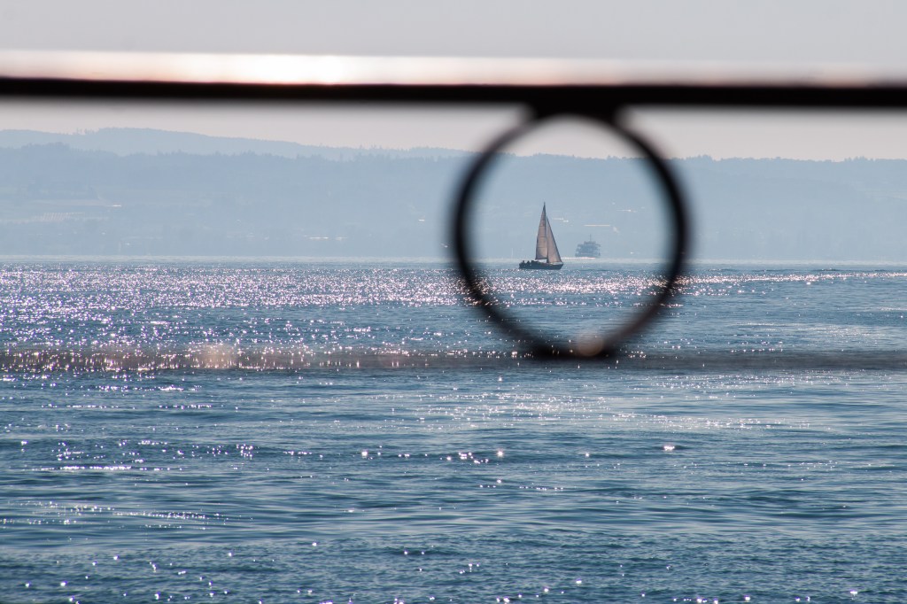 Bei der alten Destille am See finden wir keinen Stellplatz, der gesamte Bodensee ist rundum völlig überlaufen bei diesem herrlichen Herbstwetter. Also stellen wir uns nach Immenstaad, packen die Räder aus und unternehmen eine herrliche Radtour entlang des Sees. Die Fahrradwege sind ausgezeichnet, der Fahrradverkehr enorm! In Meersburg herrscht ein Betrieb „wie auf dem Kölner Hauptbahnhof“. Wir lassen uns von den Massen einmal durch die untere Stadt schieben, dann flüchten wir. Am See findet sich ein Gartenlokal, wir kehren ein, trinken ein Weissbier und essen eine Pinsa. Von oben grüsst Graf Zeppelin, die Kelter harrt des Weines und wir kehren heim.