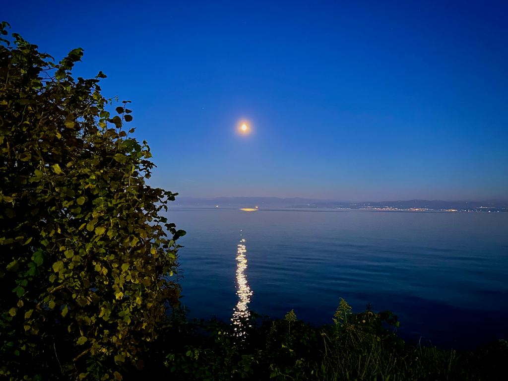 Spät Abends spazieren wir nochmals an den Yachthafen, der See liegt kitschig-schön im Mondlicht.