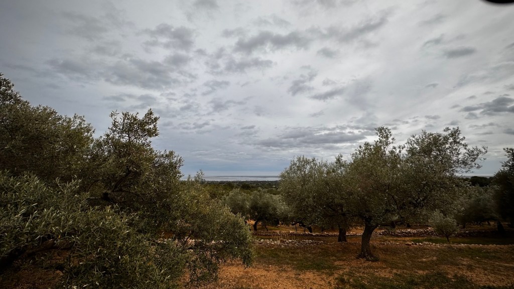 Der Sonntag dient zuerst einmal dem Ausschlafen. Nachdem die leichten Schauer abgezogen sind, setzen wir uns wieder auf die Räder und drehen eine kleine Runde. Wir radeln über eine Stunde lang durch Olivenhaine, die sich hier schier endlos aneinander reihen. Nur ein einziges, einsames Auto begegnet uns auf der ganzen Tour, ansonsten treffen wir keine Menschenseele.