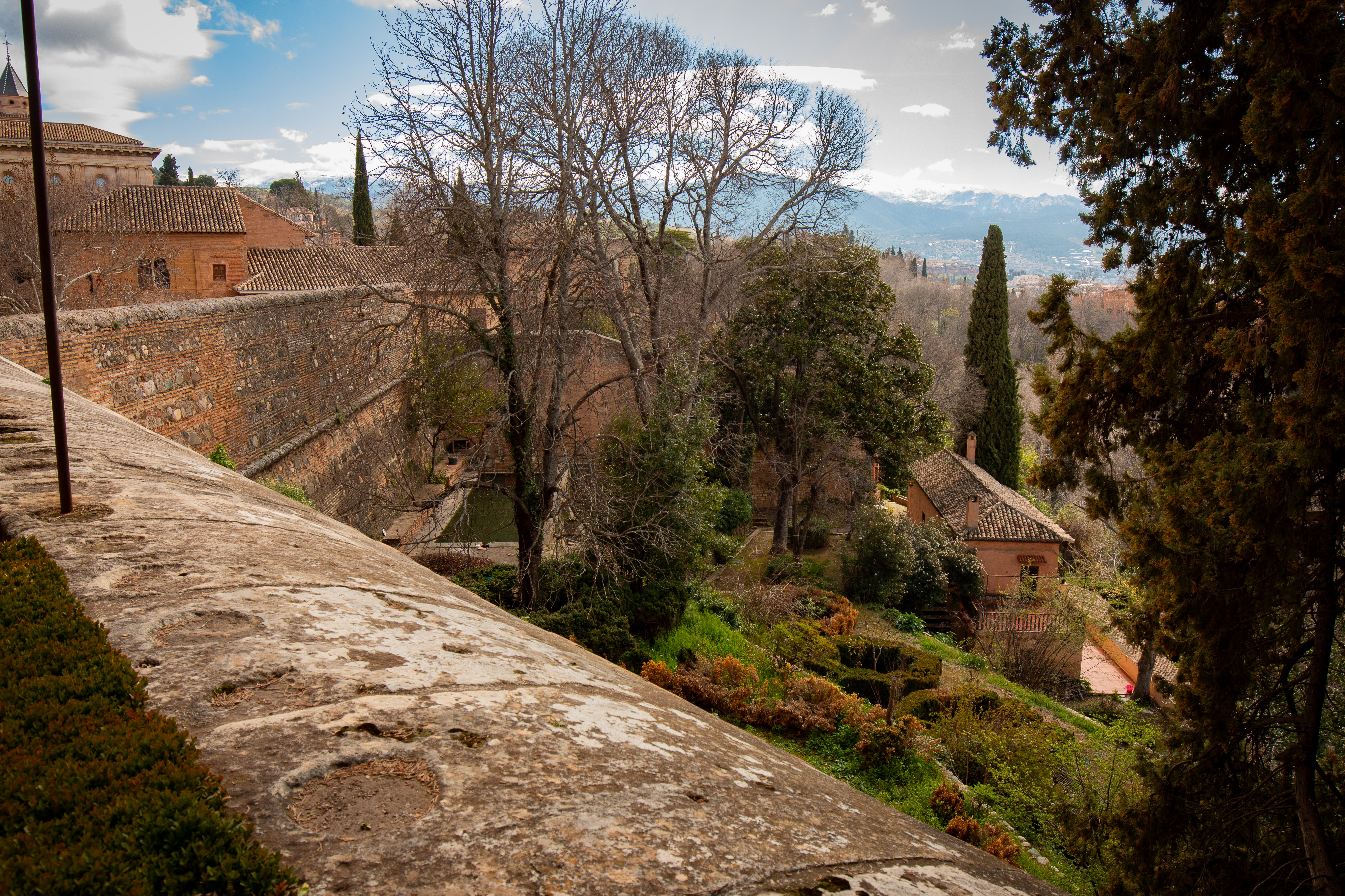 Wir starten mit der Alcazaba, der wuchtigen Festung, hinter Bäumen versteckt, dessen Bollwerk sich trotzig gegen das Tal und die Stadt reckt.