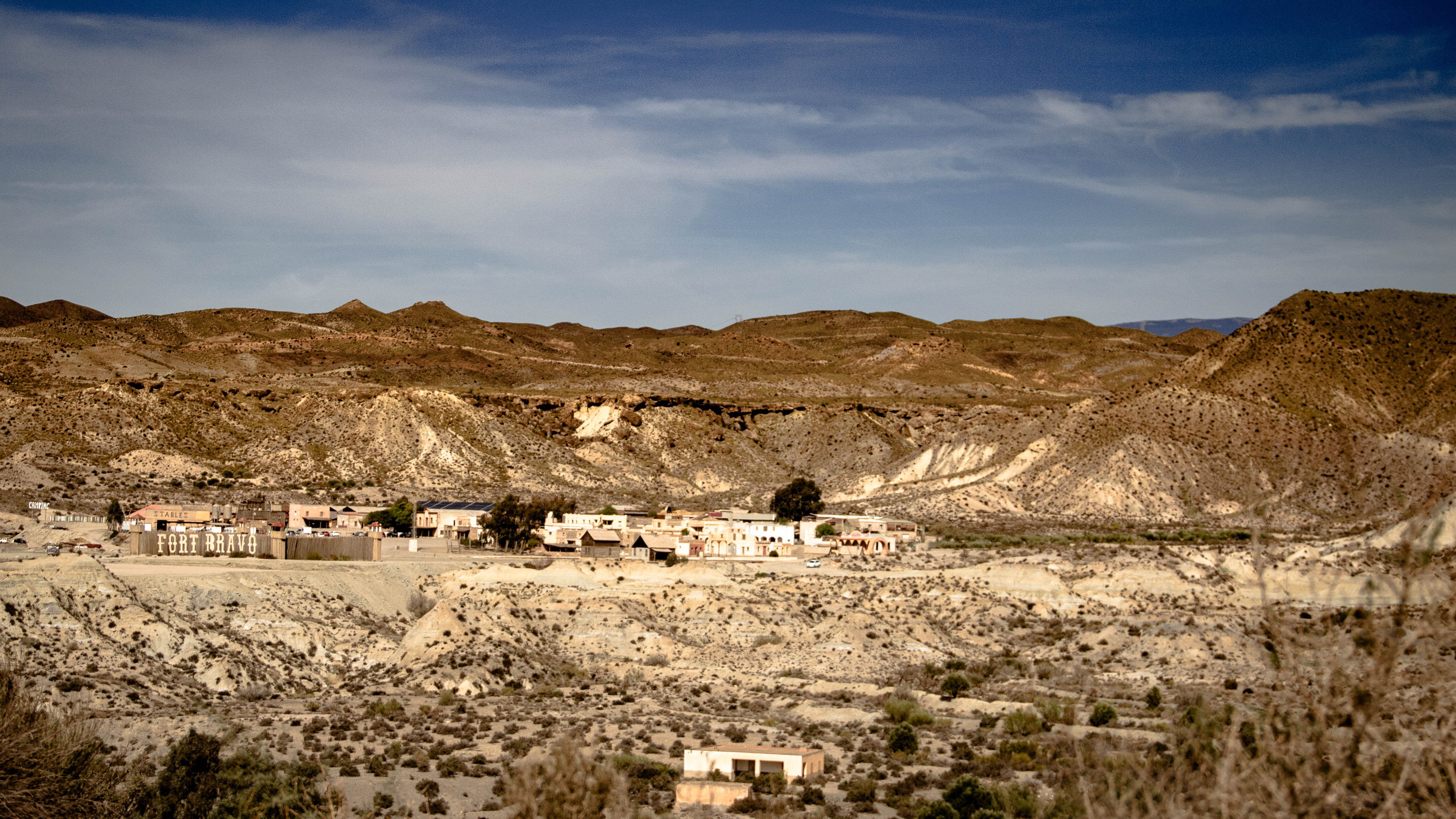 Dann aber wird es schon funky: Nahezu die gesamte Vegetation reduziert sich auf niederes, vertrocknetes Buschwerk. Kahle Stellen und Felsen kommen zum Vorschein. Nach wir mehrere ähnliche Lokationen passiert haben, machen wir kurz halt bei Fort Bravo. Hier in der unmittelbaren Umgebung hat Sergio Leone seine Italo-Western gedreht, unter anderem die bekannte Trilogie „für eine Handvoll Dollar“, mit Clint Eastwood.