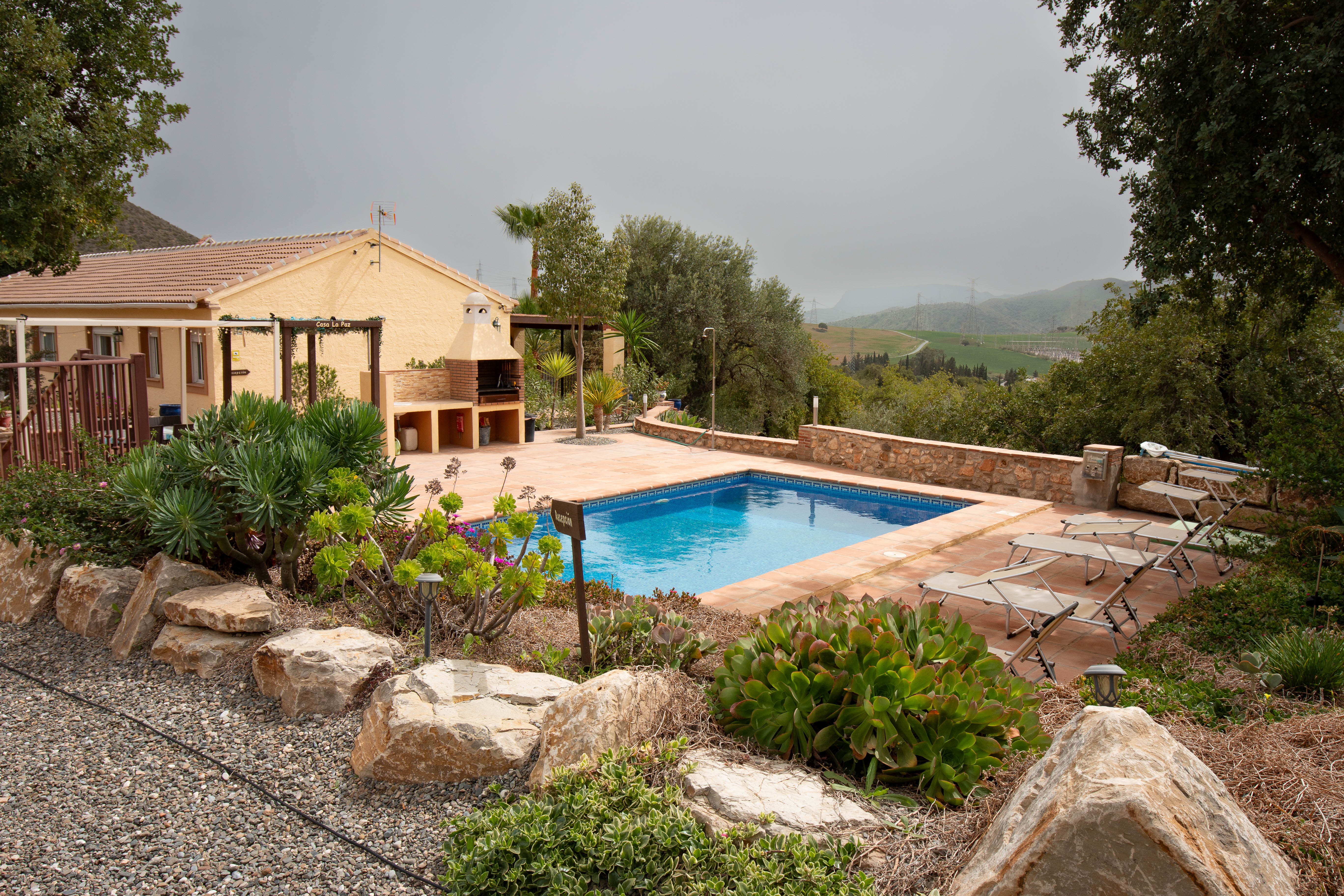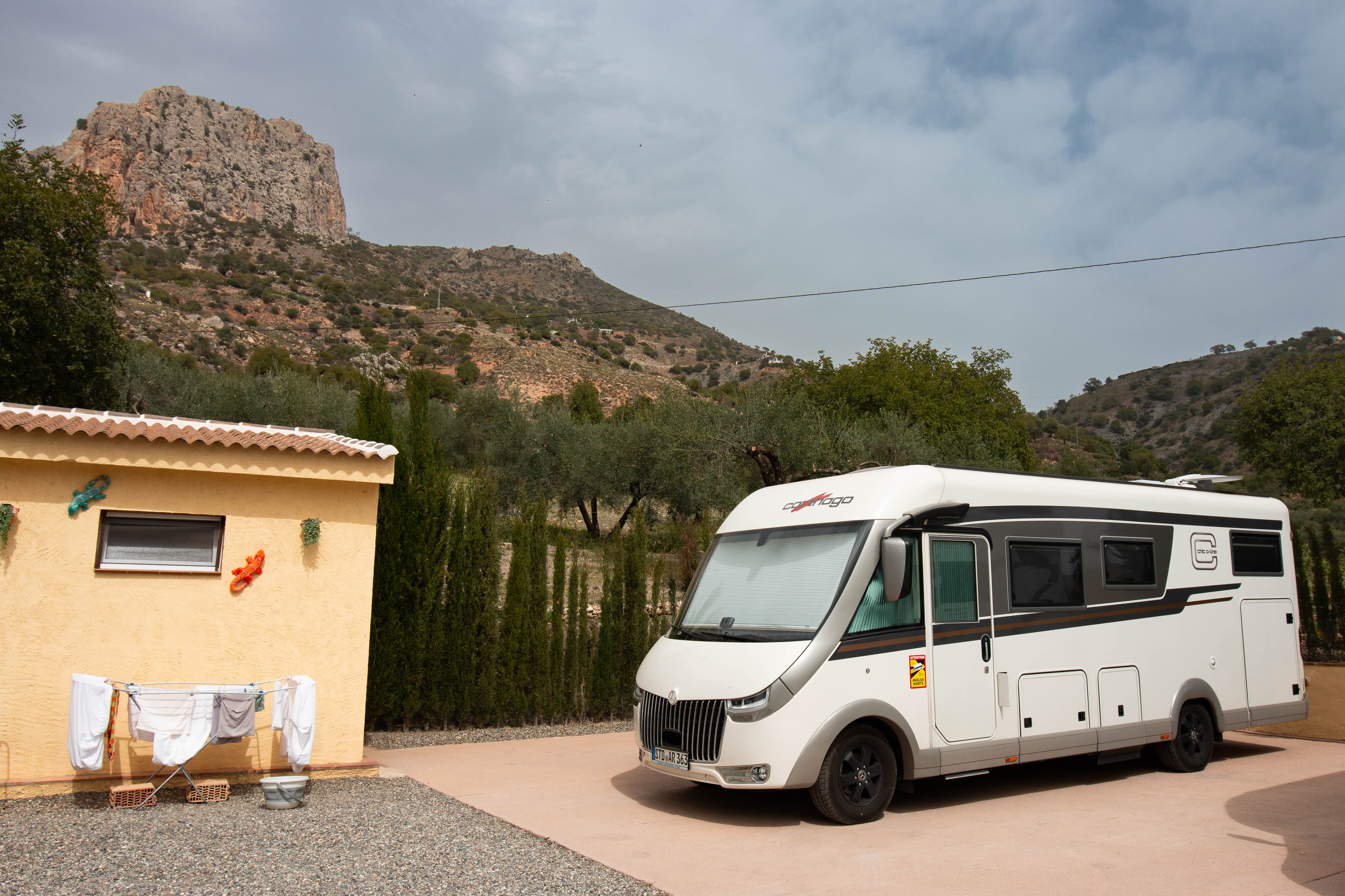 Wir stehen mit unserem Mobil bei Glynn und Julie, zwei Briten aus London, die vor vier Jahren ihre Stadt verlassen haben und dieses kleine Anwesen oberhalb von El Chorro erworben haben. Sie haben Haus und Grundstück liebevoll hergerichtet, mit Pool, Terrasse und nur zwei Stellplätzen für Mobilsten wie wir. Es ist weit zur nächsten Einkaufsmöglichkeit, es ist steil hier herauf und die Zuwegung ist fahrtechnisch eine kleine Herausforderung. Aber es ist wunderschön hier heroben. Wir nutzen die gute Gelegenheit und machen Waschtag.