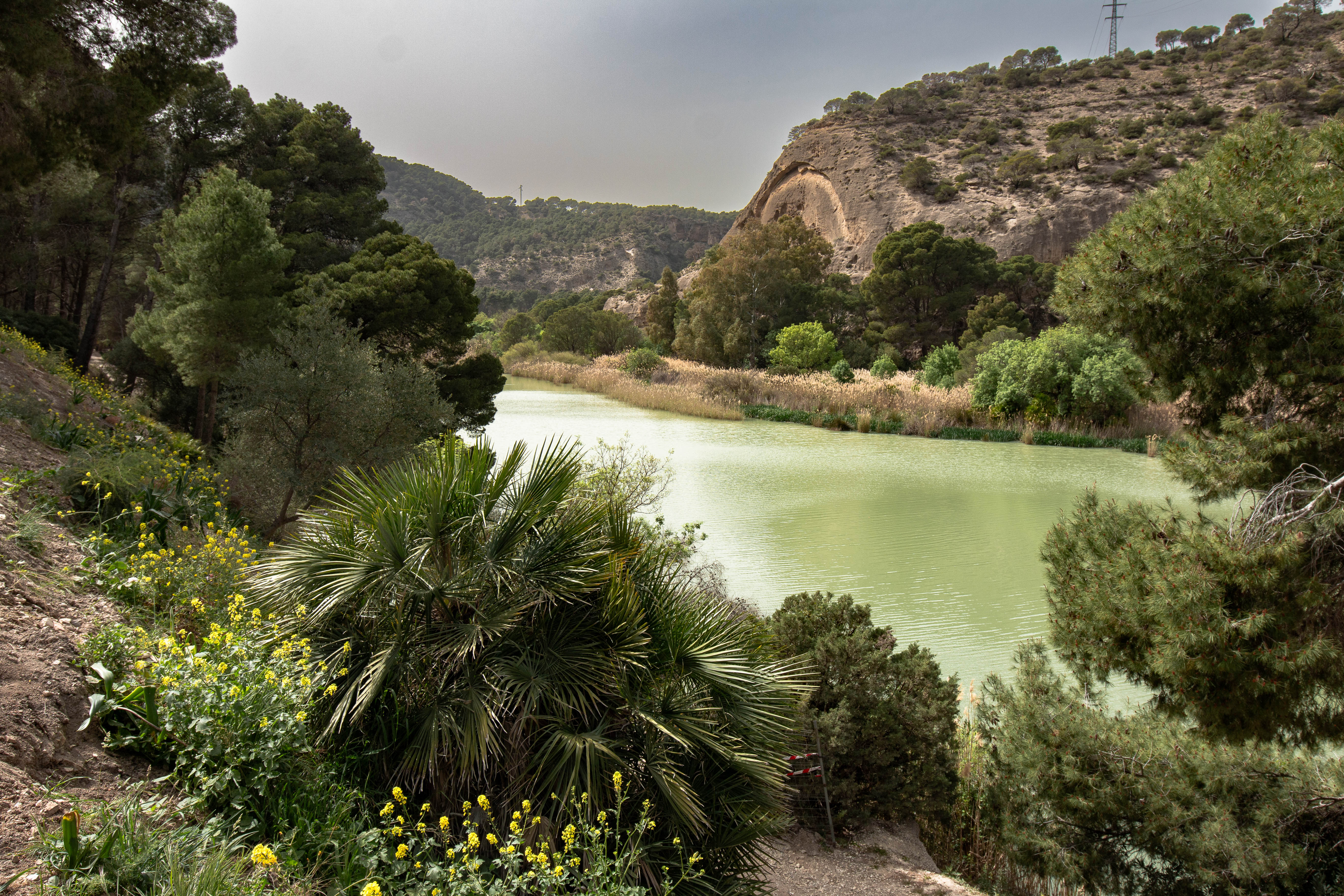 Heute soll es endlich soweit sein: Ich werde den Caminito del Rey gehen.Schon vor zwei Monaten habe ich die Eintrittskarte gebucht. Mit Rucksack, Wasserflasche und Kamera bepackt mache ich auf dem Fahrrad die kurze Stecke bergab nach EL Chorro. El Chorro besteht im Prinzip nur aus einem Bahnhof und dem Wasserkraftwerk, das unterhalb der paar Häuser für die vielleicht 350 Einwohner steht. Das Wichtigste an El Chorro ist der Südausgang des Caminito. Diesen Weg kann man nur von Nord nach Süd gehen, der „Kleine Königsweg“ ist aus Sicherheitsgründen eine Einbahnstrasse. Zwischen Nordeingang und Südausgang gibt es einen Busverkehr, der vom Bahnhof El Chorro aus startet. Diesen werde ich nehmen, um zum Eingang zu kommen. Das Ticket für die ca. 30 minütigen Fahrt kostet 2,10€. Am Eingang zum Caminito angekommen habe ich noch etwas Zeit, es werden feste Timeslots für den Besuch vergeben und diesen muss man, wiederum aus Sicherheitsgründen, einhalten.