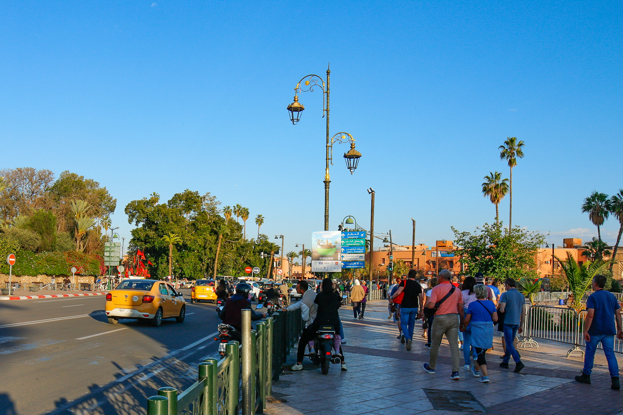 Nach der geziemenden Hochachtungs-Bezeugung bezüglich dieser Meisterleistung wenden wir uns der alten Mellah, dem ehemaligen Judenviertel zu. Wir durchwandern die alten, typischen Souks, in denen eher Einheimische als Touristen zu finden sind. Unser Spaziergang endet, wie fast alle Streifzüge durch Marrakech, wieder am Djnemaa el Fnaa.