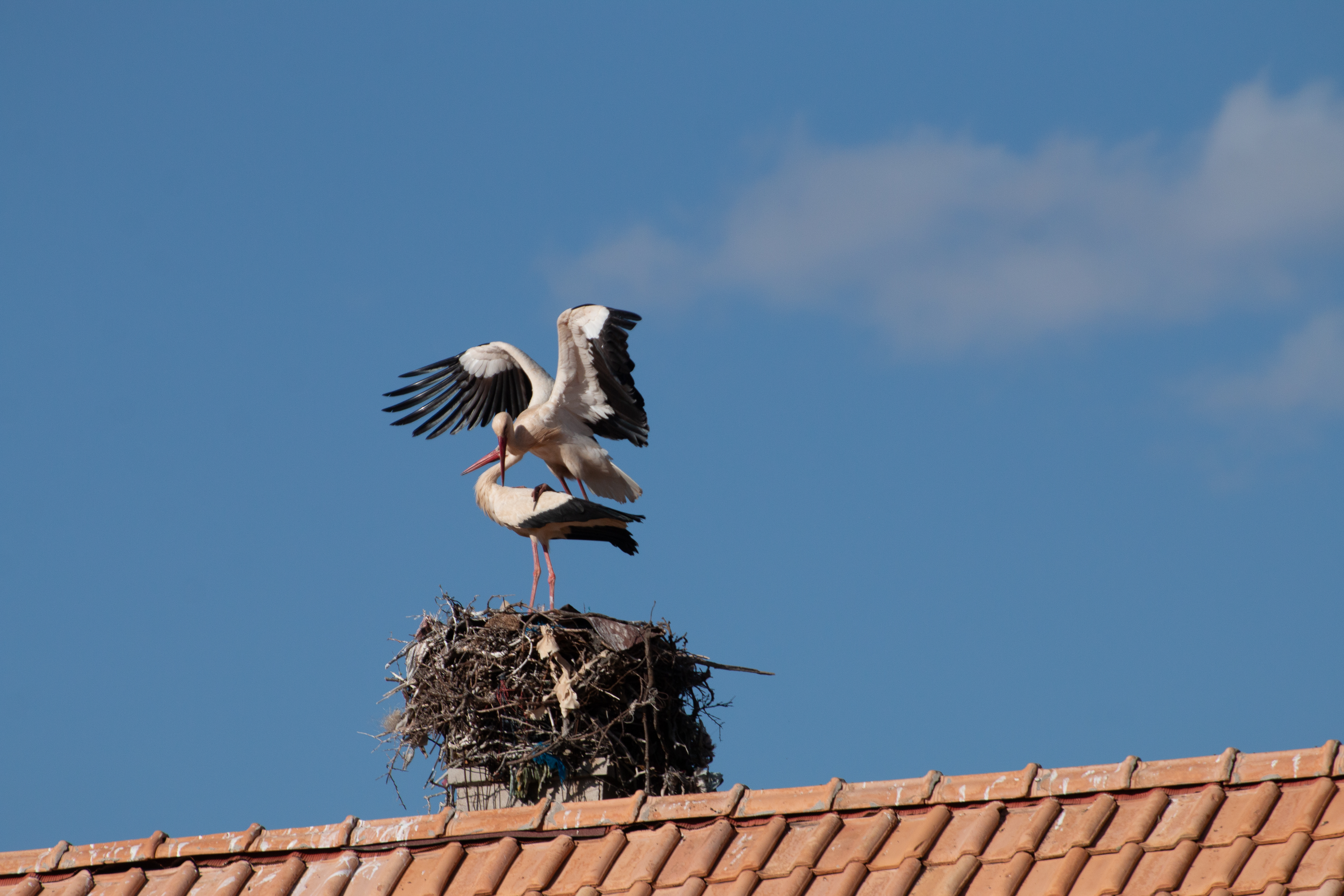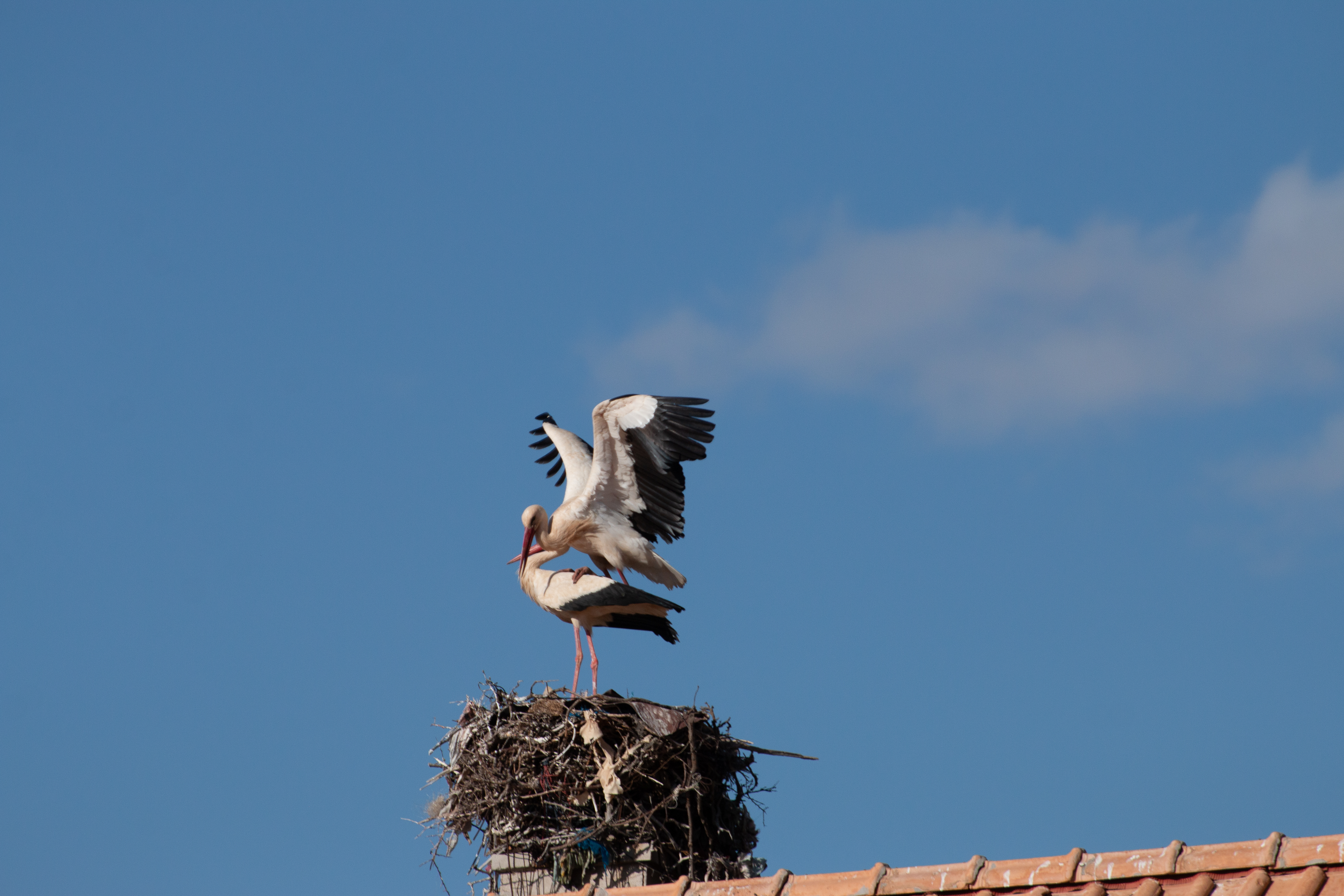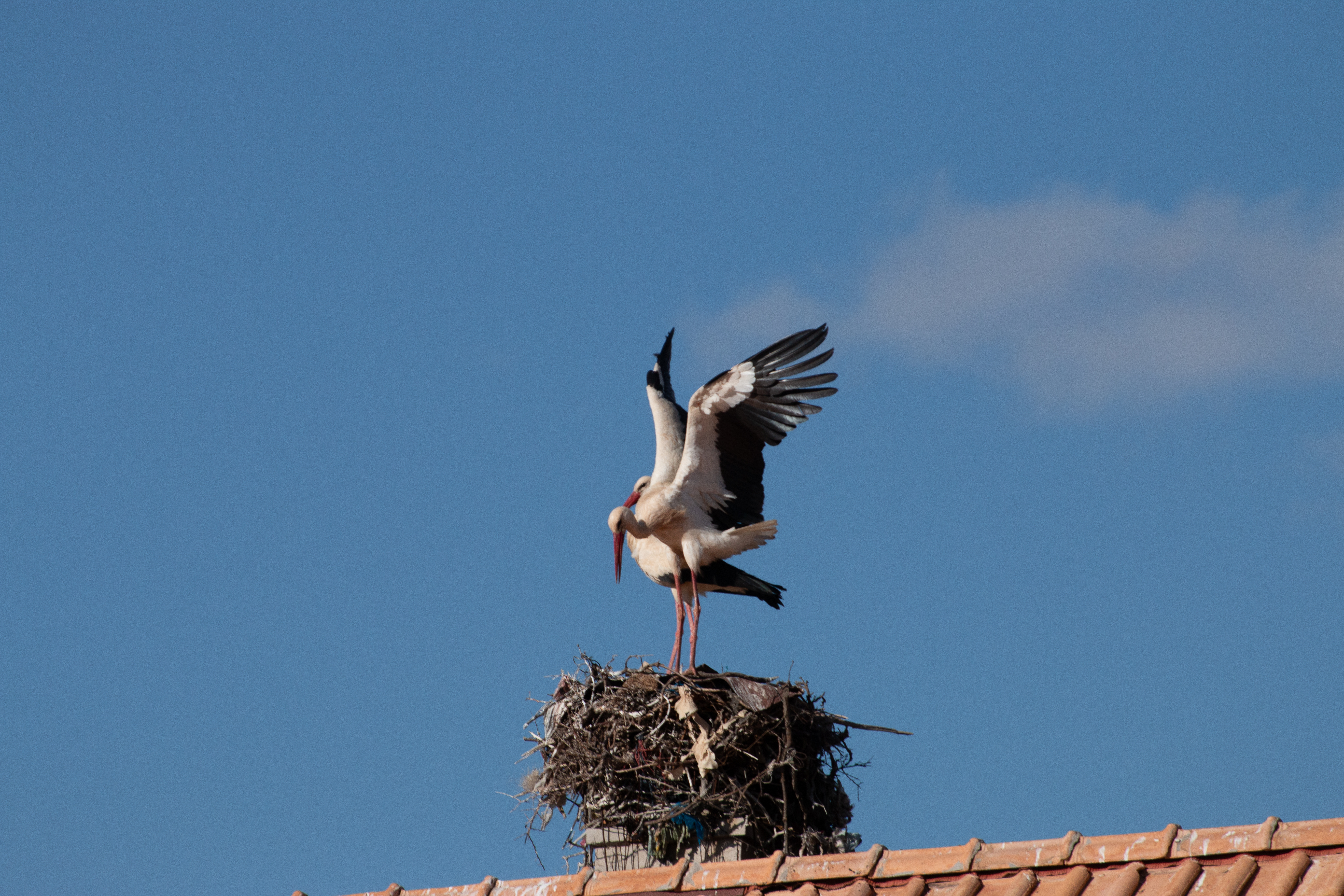 Auf dem Dach des Hotels gibt es ein Storchennest. Gerade mache ich mich auf den Weg, das Paar zu „portraitieren“, als der Hochzeitstanz losgeht!