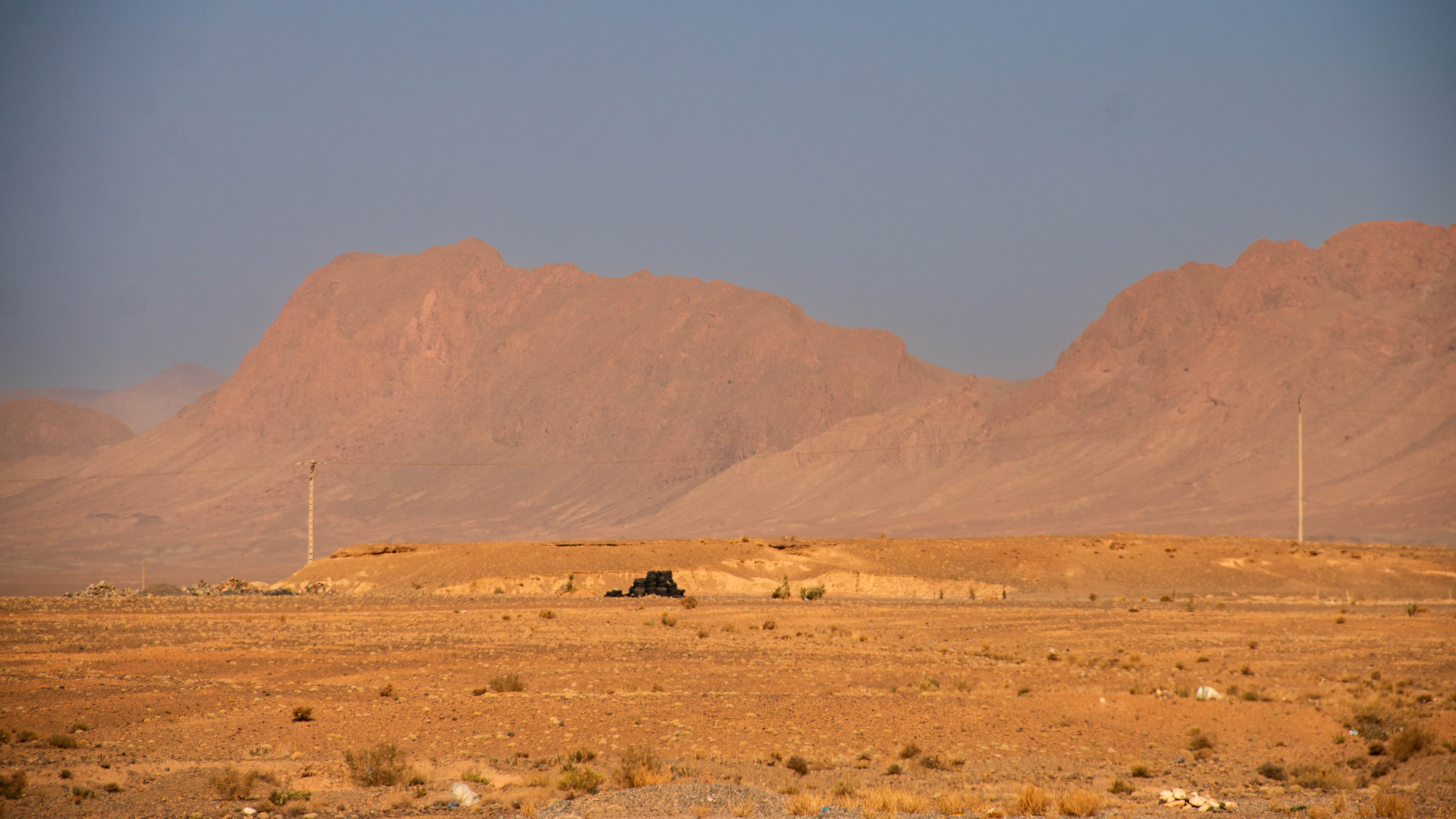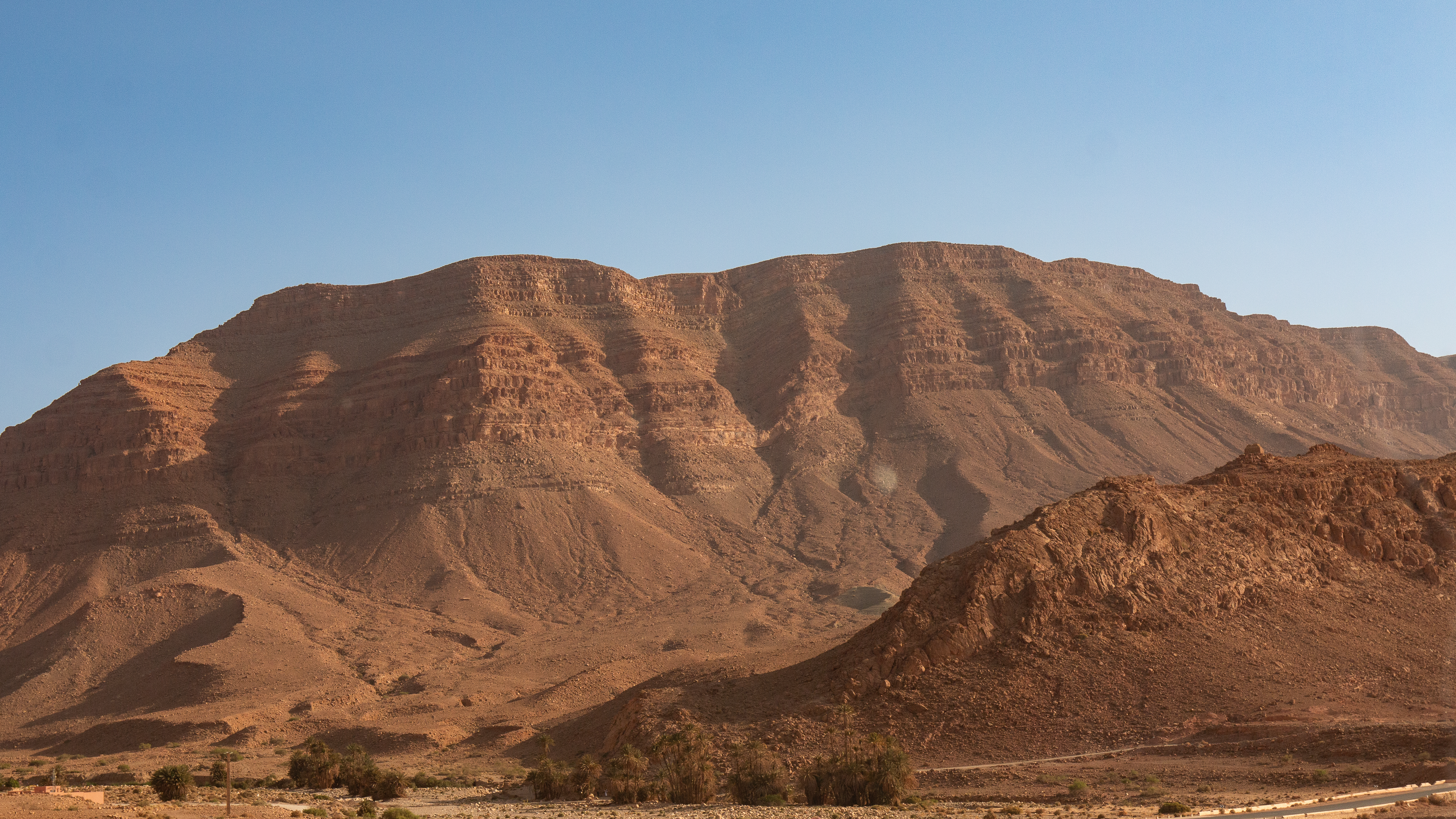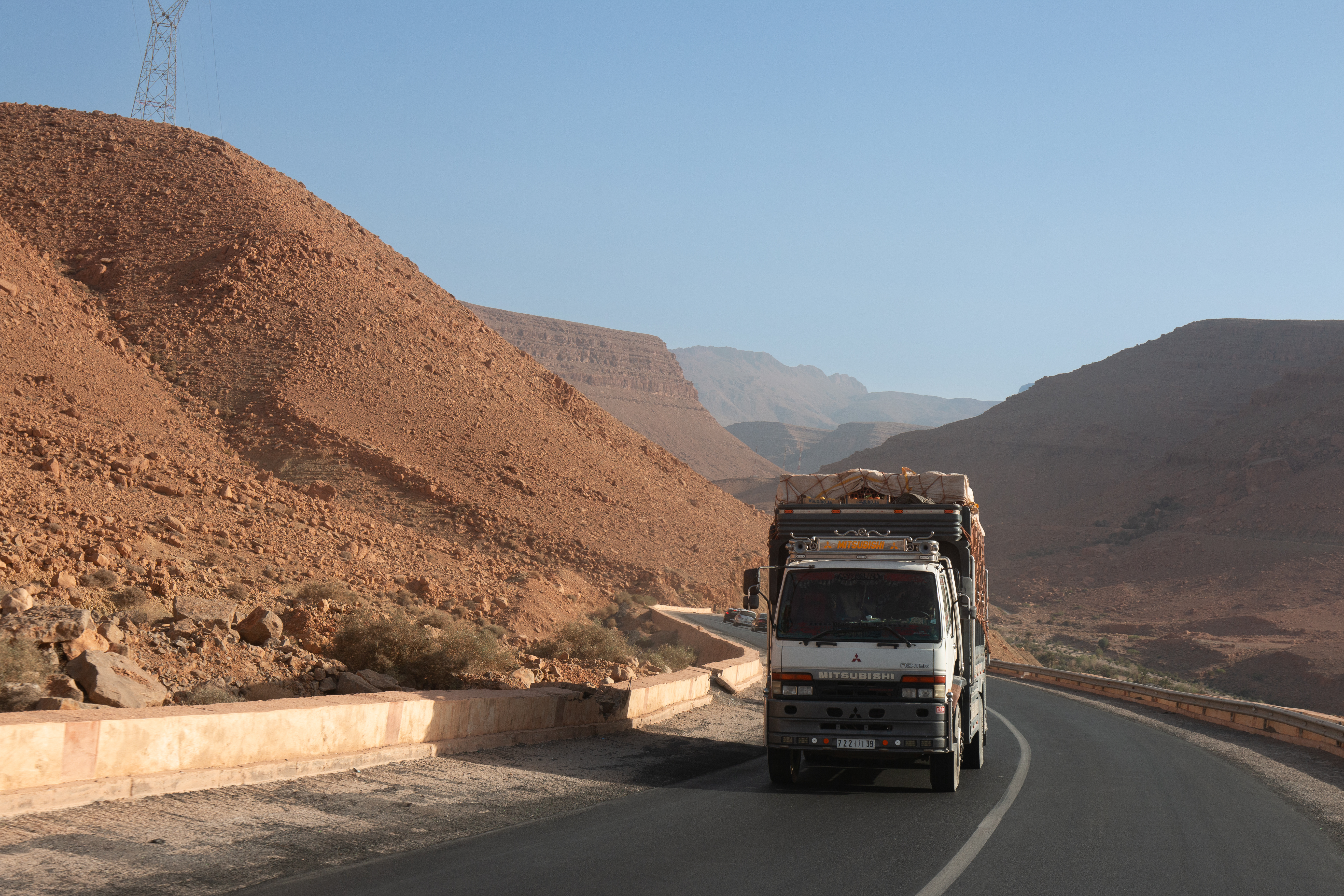 Ein lokales Hotel, eins für einheimische Gäste und somit ohne Lizenz zum Alkoholausschank, reicht das landestypische Abendessen: Tagine „mit irgendwas“. Mir schmeckt es, die zum Nachtisch gereichten Orangen sind aber steinhart und mit dem stumpfen Messer nicht zu schälen. Also puhle ich sie mit den Fingern auf und esse die Segmente aus der Hand. Ein schwerer Fehler, wie ich am nächsten Morgen schmerzlich feststellen muss. Die Früchte waren sicher nicht gewaschen gewesen und die „Rache Montezumas“ ist durchschlagend. Mit einer ordentlichen Dosis Imodium kriege ich die Sache währende des Tages „in den Griff“. Übrigens ist es in solchem Fall echt von Vorteil, wenn man mit eigenem Badezimmer unterwegs ist.
