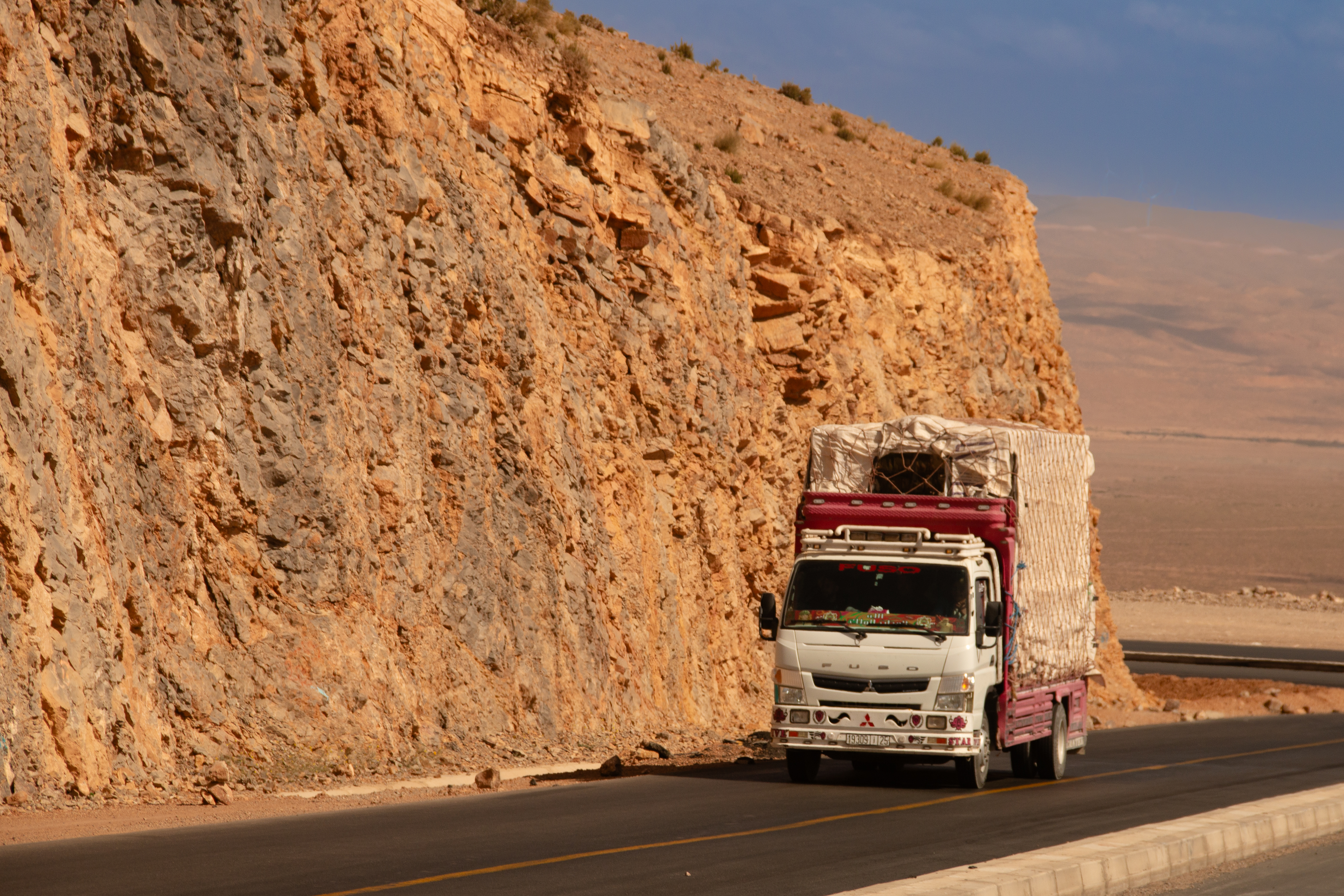 Erst nach einiger Zeit steigt das Gelände wieder an und wir kommen ins Gebirge. Uns beeindrucken wieder die Felsformationen, die das Licht in immer neuen Formen und Farben darstellt.