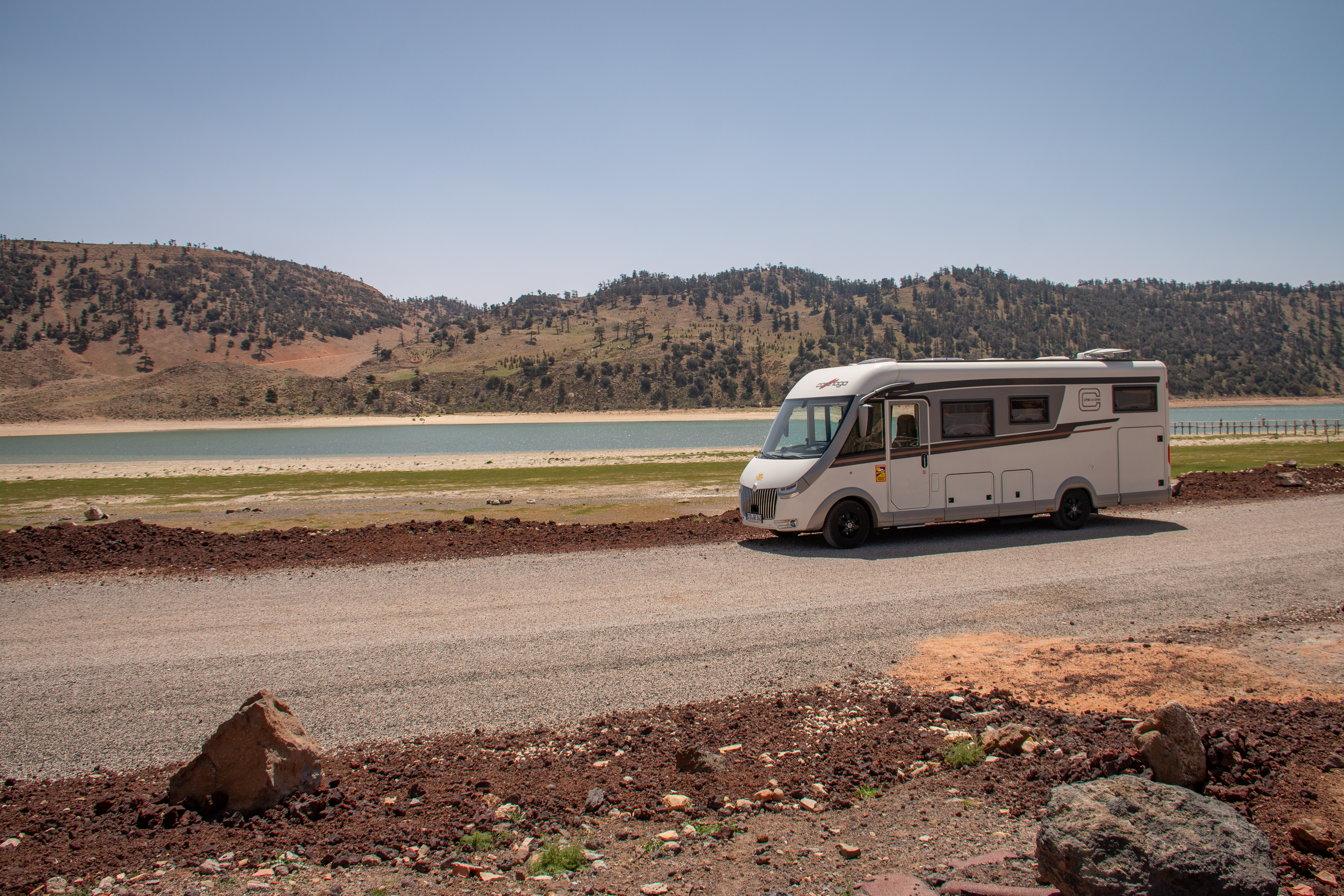 Weiter führt uns der Weg gen Norden, übers Gebirge. Der Plan ist, am Lake Aguelmam, einem Gebirgssee frei zu übernachten. Erreichen liegt sehr einsam auf fast 2100 Meter über dem Meer, dort gibt es ein ausgesprochen schönes Hotel mit exquisiter Küche, die wir zum Abendessen in Anspruch nehmen wollen. Das Haus ist ein ehemaliger „lost place“, erst in den letzten Jahren aus Naturstein und Zedernholz wieder aufgebaut und einfach eine Augenweide. Wir dürfen davor stehen und geniessen diesen so außergewöhnlichen Ort.
