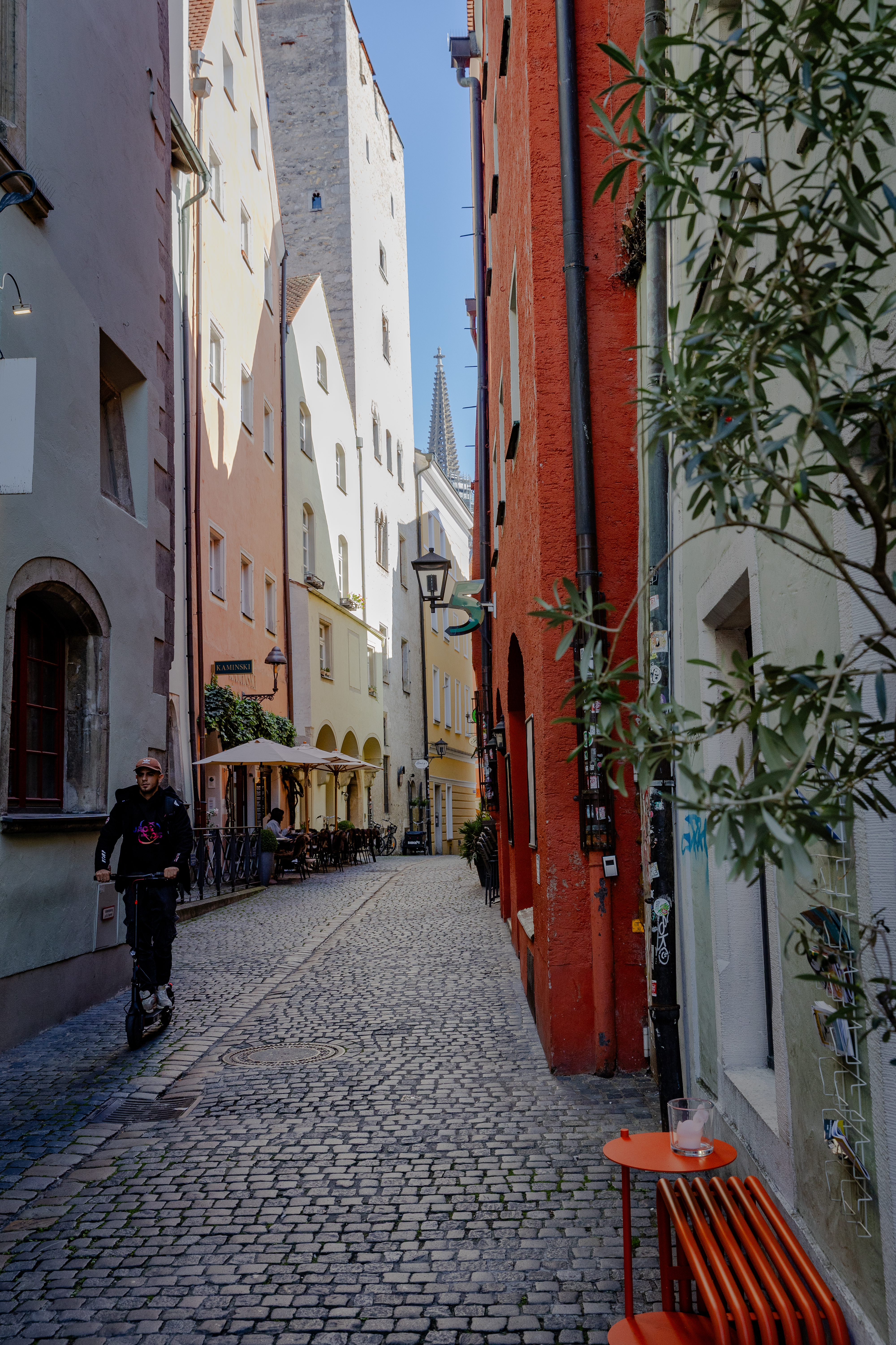 Die Stadt bietet uns wirklich sehr viel Motive. Am nächsten Tag durchstreifen wir erneut die Altstadt. Nahe beim Dom essen wir zu Mittag, so wie ich es mir gewünscht habe: Pfannkuchensuppe und dann ein knuspriger Schweinsbraten mit Klößen in einer typisch bayrischen Gastwirtschaft, dem Weltenburger am Dom.