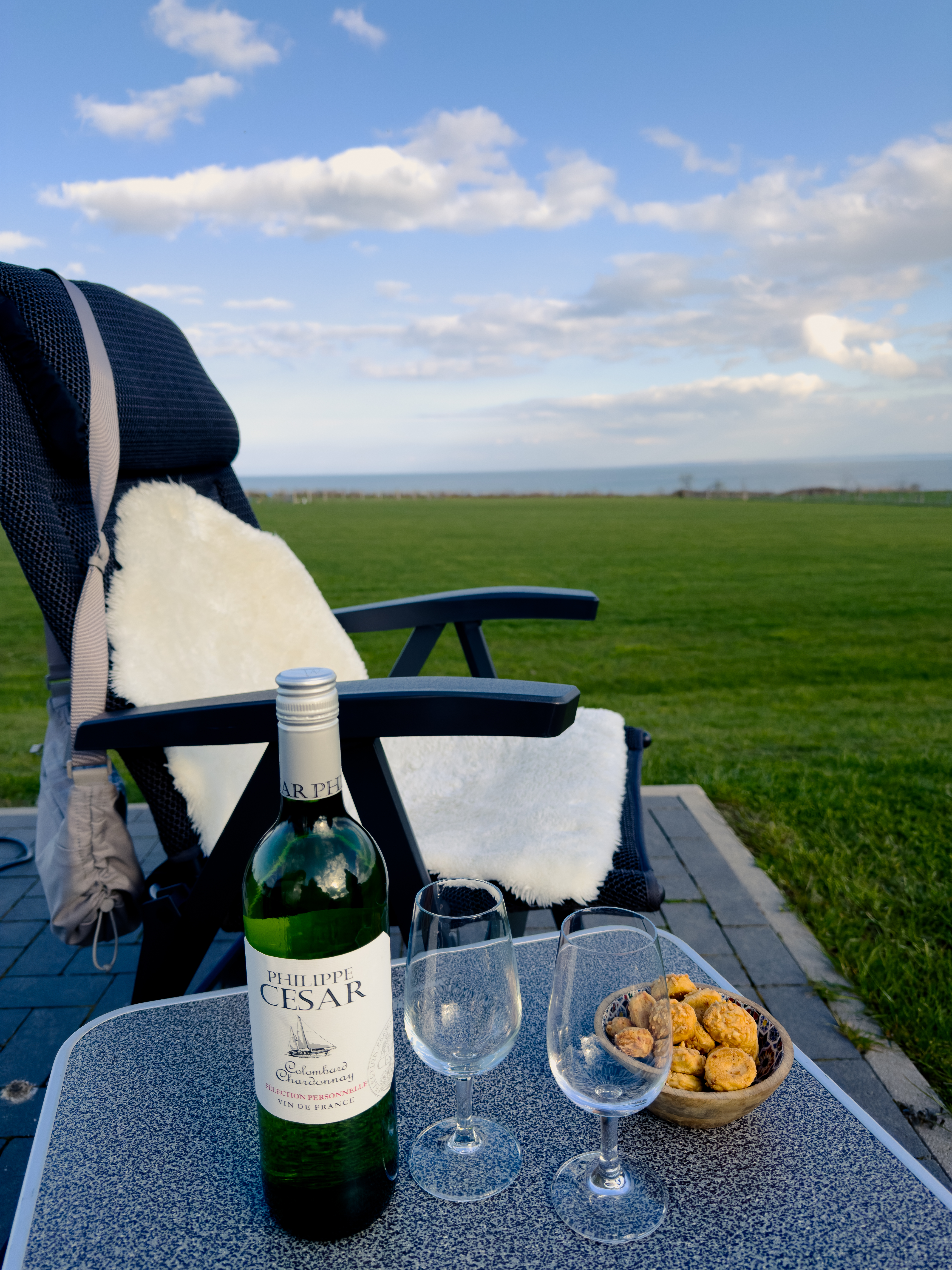Am Dienstag wartet einer unser Lieblingsplätze auf uns: ein kleiner, piccobello sauberer Stellplatz, zwischen Grömitz und Neustadt gelegen und mit traumhaftem Blick über eine weite, saftig grüne Wiese hinweg, auf die blaue Ostsee. Das Wetter ist sonnig, aber es ist noch frisch.